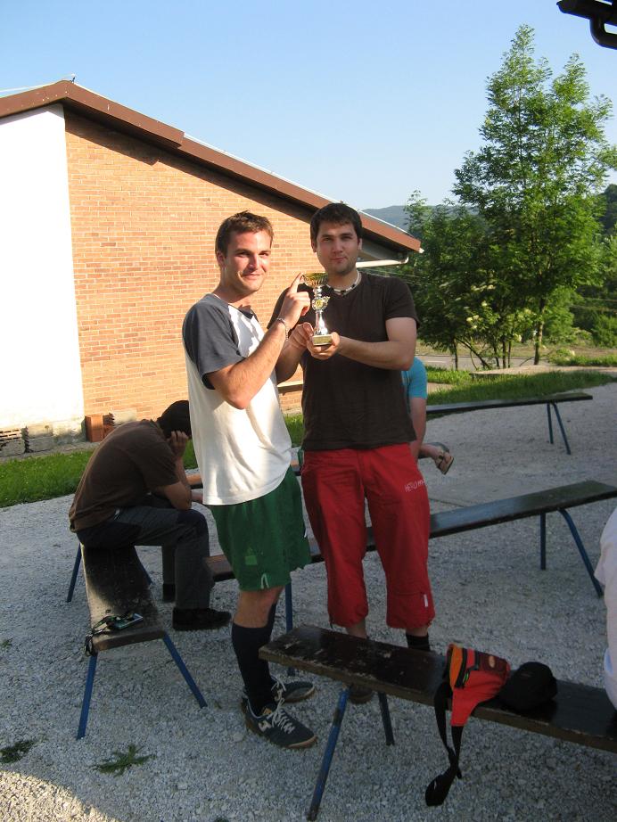 V Breginju se je v soboto, 23.5., odvijal malonogometni turnir trojk. Nanj so se prijavile samo štiri ekipe, zato smo se organizatorji odločili, da bodo igrale vsaka z vsako enokrožno, na koncu pa naj bi se najboljši ekipi v skupini med seboj še enkrat pomerili za prvo mesto, tretje in četrtouvrščena ekipa pa naj bi se pomerili za tretje mesto. Na koncu so se na mestu prireditve pojavile le tri ekipe, zato je bilo potrebno sistem tekmovanja nekoliko prirediti. Odločili smo se, da bodo ekipe odigrale vsaka z vsako dvokrožno. Tekmovanje se je odvijalo v lepem vzdušju, brez nepotrebne nervoze, ter se tako tudi končalo. Pokal za najboljšo ekipo je zasluženo romal v roke ekipi Kotarji, saj ta ekipa ni oddala niti ene točke. Drugega mesta se je veselila ekipa SiSA, na zadnjem mestu pa je brez osvojene točke končala ekipa TNT Express. Na koncu smo podelili tudi pokal za najboljšega posameznika turnirja, katerega si je z odličnimi igrami zaslužil Anjan Rakar. Po odzivih igralcev in navijačev (najbolj vztrajni so ob šanku ostali še dolgo po koncu prireditve!) smo lahko zadovoljni tudi organizatorji.