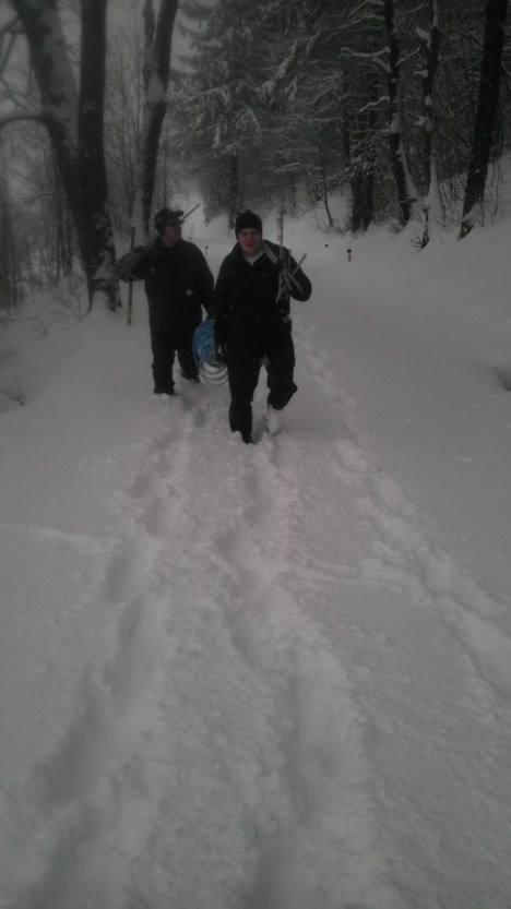 Sproščena družba, delujoča vlečnica, sneženje = čudovit sobotni večer